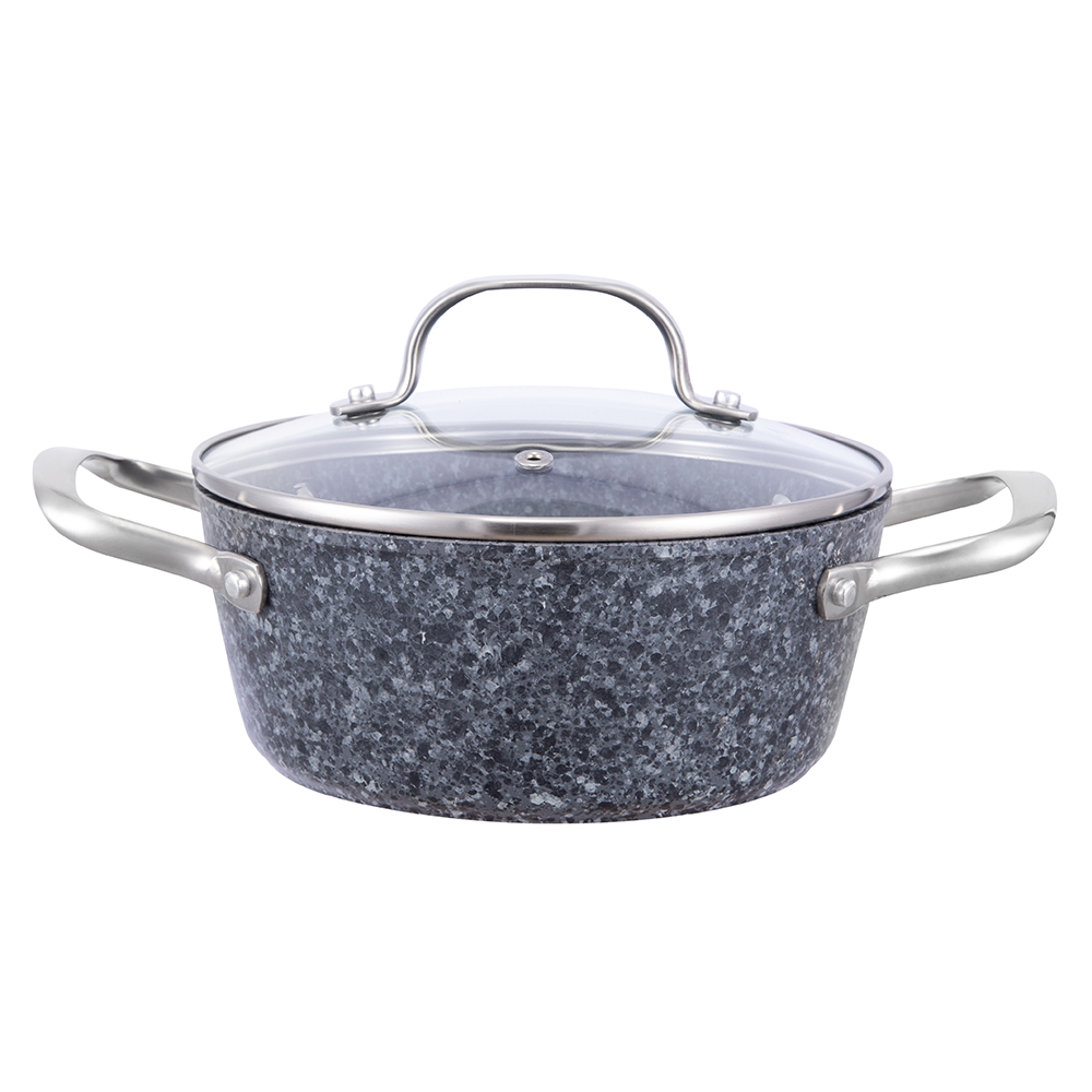 / 제품 / 24*10.5cm 유리 뚜껑이 있는 화강암 코팅 붙지 않는 알루미늄 냄비 JY-HGYG-2-24105