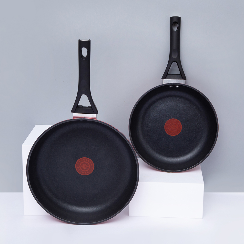 OEM/ODM 24*5.0cm 뚜껑이 없는 붙지 않는 빨간색 열 변색 스팟 알루미늄 프라이팬 JY-HHDL22-2450