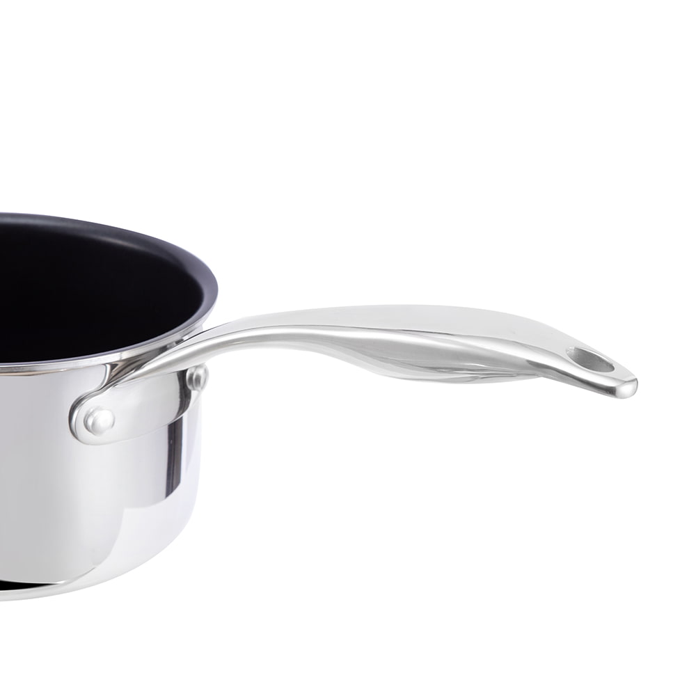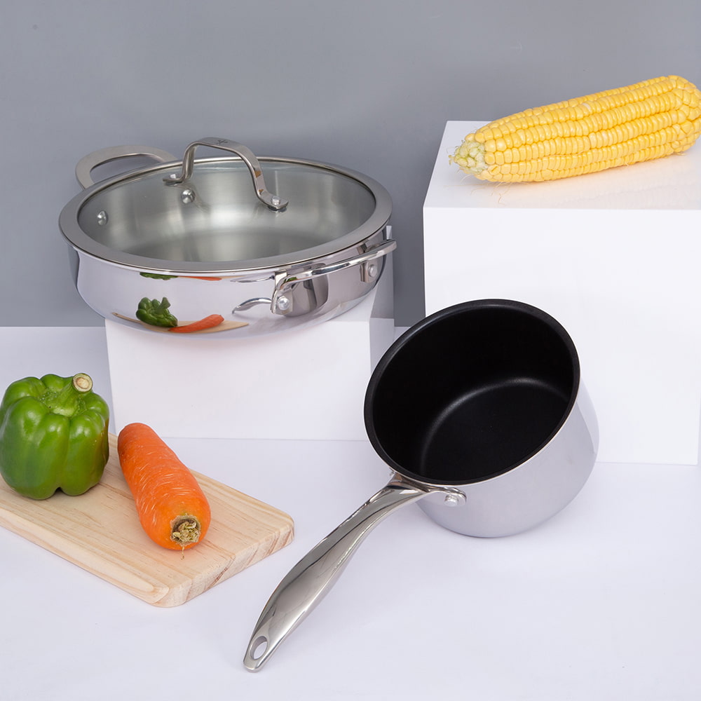 현대적인 3겹 기반 기술(스테인리스 알루미늄 스테인리스 스틸)이 적용된 스테인리스 스틸로 제작되어 열을 고르게 분산시켜 더 빠른 요리를 보장하고 음식을 더 오랫동안 따뜻하게 유지합니다. 직경 14cm로 다양한 주방 작업에 탁월한 크기입니다.