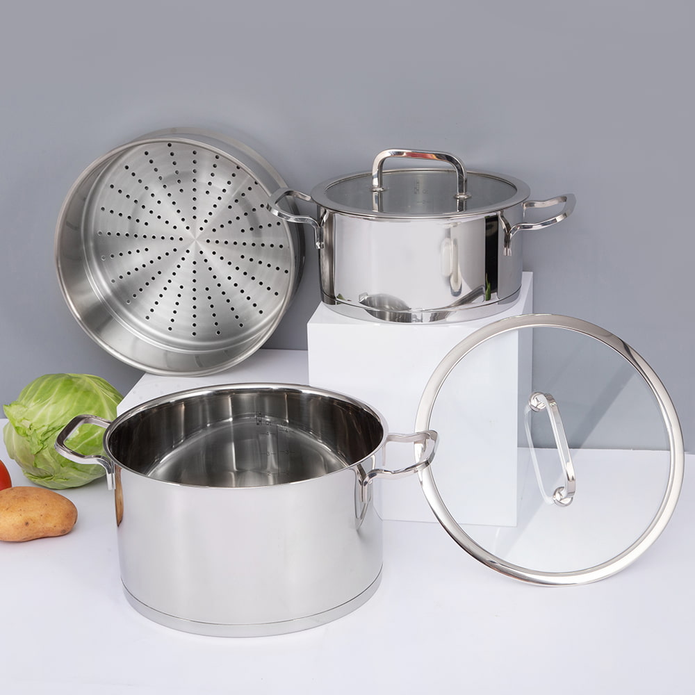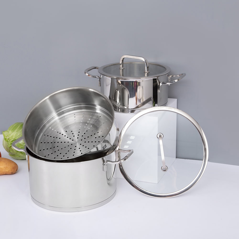/ 제품 / 스톡팟 / SUS304 스테인레스 스틸 냄비 / 24*13.8CM 양면 손잡이 SUS304 뚜껑 냄비 JY-24138ZFD