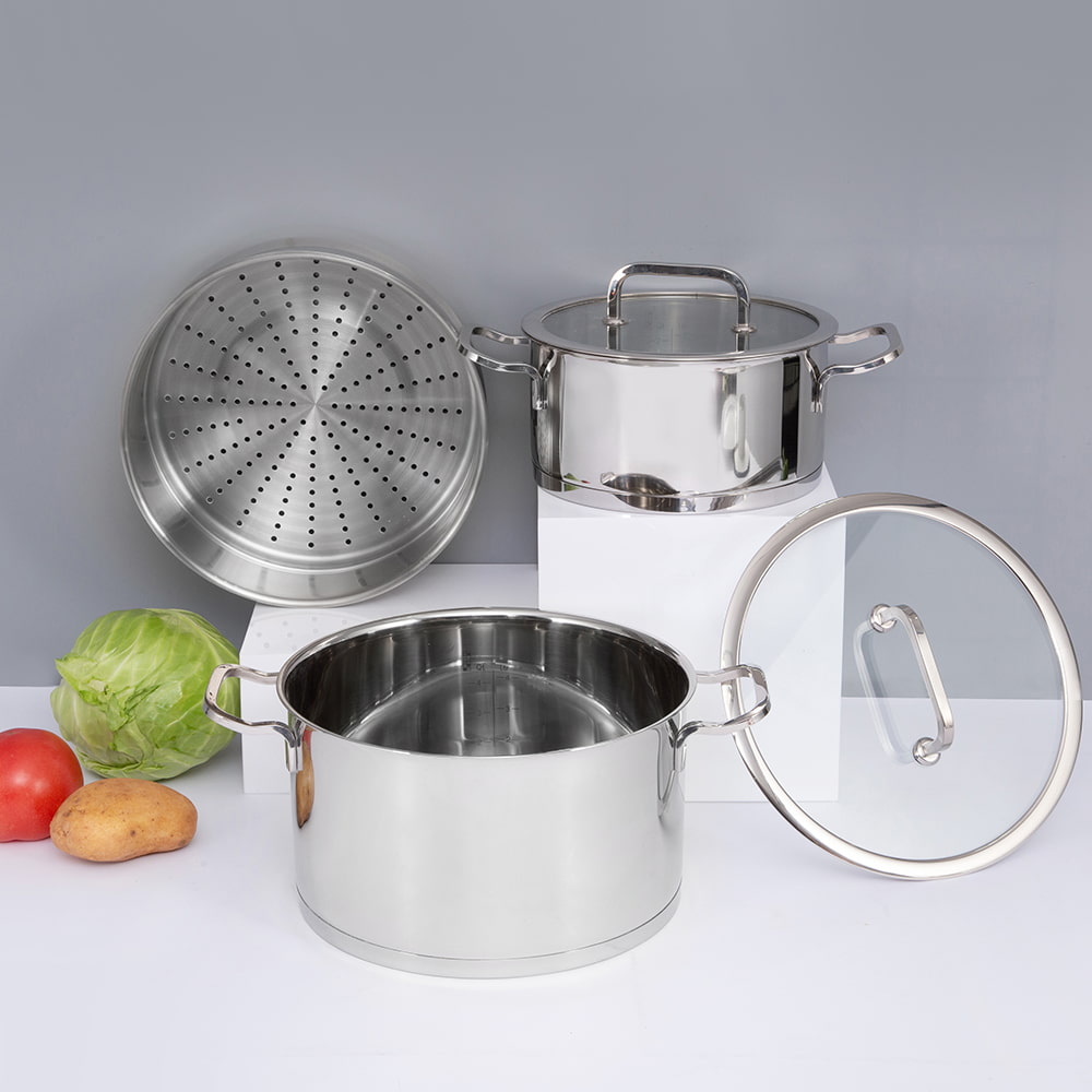시간과 에너지 절약: 비결은 더 빠른 요리를 위해 열을 고르게 분산시키는 3겹 바닥(스테인리스 알루미늄 스테인리스 스틸)입니다. 그렇기 때문에 요리하는 동안 불을 낮게 유지하여 에너지를 절약할 수 있습니다.